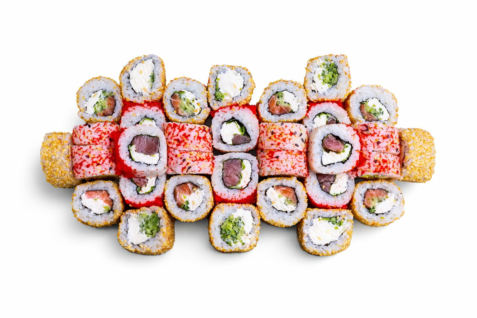 Фудзи (лосось)Чикен чиз (курица, 3 вида сыра)Немо (краб, креветка)Выход: 1050 гр.